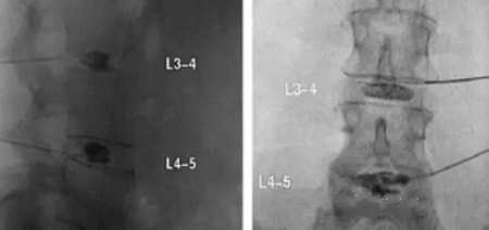 X線矢狀位和前后位L3-4和L4-5椎間盤造影術(shù)