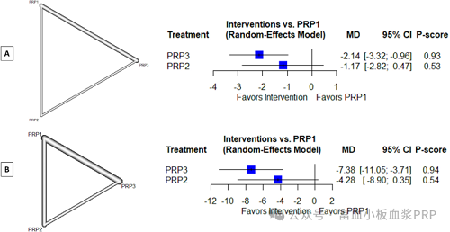 作者檢索了Embase、PubMed、Scopus、Cochrane對照試驗中心注冊庫中已發(fā)表的數(shù)據(jù),從建庫到2024年9月30日沒有語言限制。納入了隨機(jī)對照試驗 (RCTs),這些試驗比較了膝骨關(guān)節(jié)炎患者不同劑量 PRP 注射的臨床療效。通過(VAS)或(WOMAC)。最終提取了 4 組的數(shù)據(jù),包括單次PRP注射 (PRP1) 、 2 次 PRP 注射 (PRP2) 和 3 次 PRP 注射 (PRP3)。